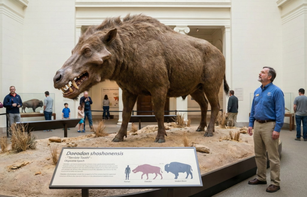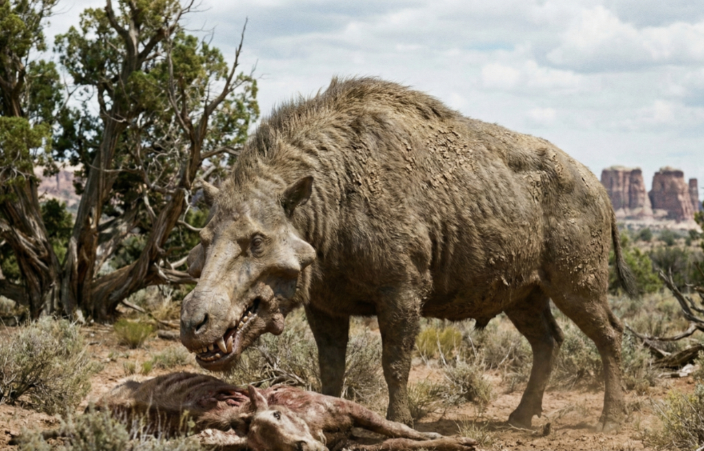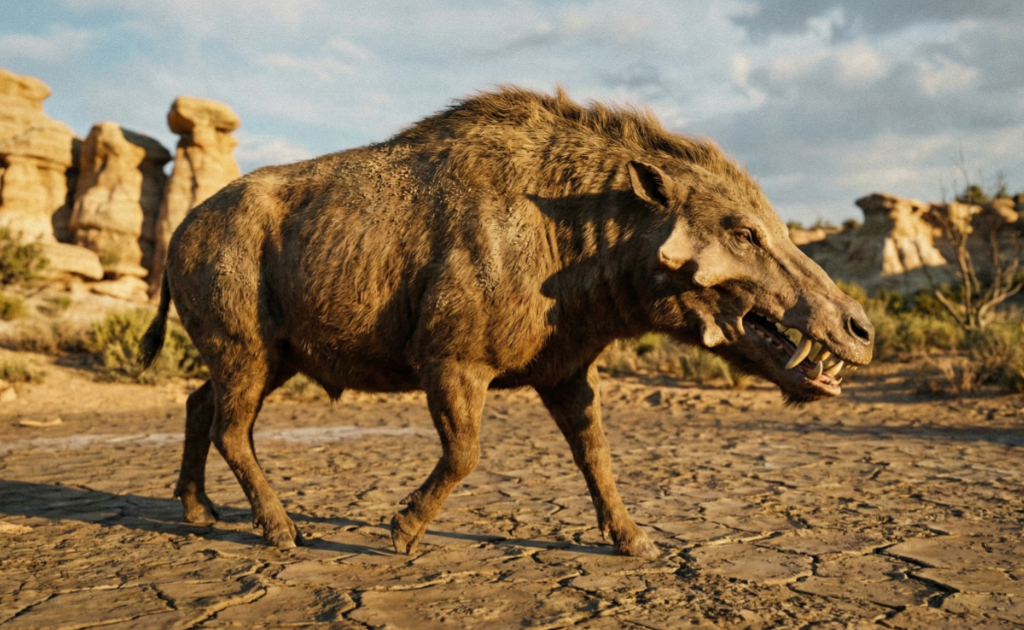 ダエオドンは雑食性の哺乳類で主に植物を食べていたとされていますが腐肉を食べていた可能性も高いと言われているイノシシに似た大型の動物です。また、以前はディノヒウス(恐ろしいブタ)という名で呼ばれていた事もありました。