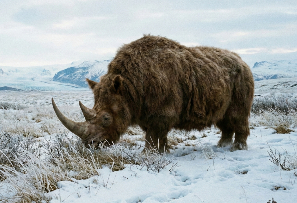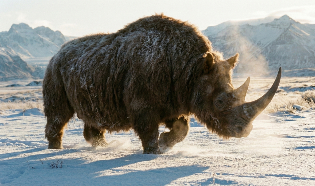 ケブカサイはその名の通り全身に毛の生えたサイの仲間で学名は「中空の歯」という意味になります。同じく全身に毛の生えた絶滅動物として有名なケナガマンモスや同じサイ科のエラスモテリウムと共に氷河期を象徴する動物とされています。