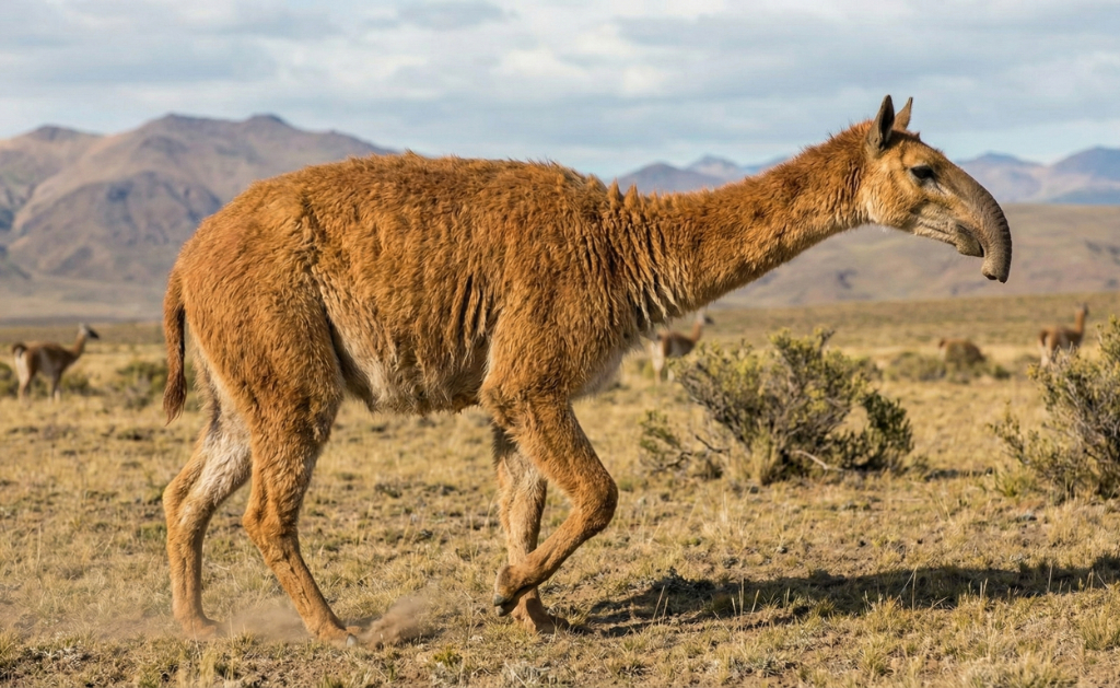 マクラウケニアは「大きなラクダ」という意味の名前を持つ哺乳類で体はラクダに少し似ていますがラクダの仲間ではなく、ラクダよりも体が大きいという事もありません。また、南アメリカ特有のグループである滑距類の最後の生き残りであったと言われています。