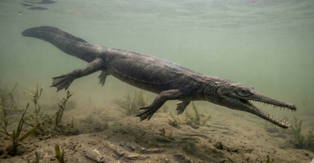 多くの時間を水の中で過ごしていたと考えられており、長い尾と後肢を使って水の中を上手に泳いでいたとされています。