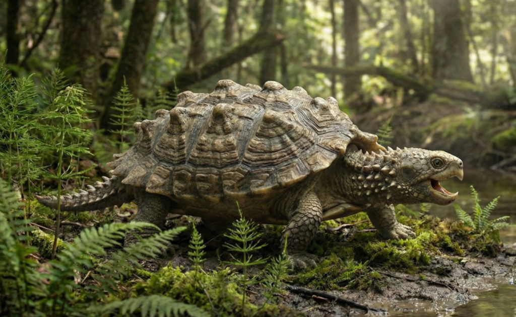 また、現生のカメのように四肢や頭部を甲羅の中にしまう事ができなかったようです。